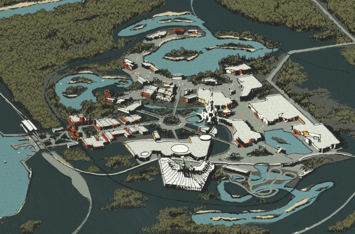 Taking maximum advantage of the setting as it exists in its natural state, the designers and planners of WED Enterprises have conceived a Vacationland oriented to both land and water recreation, and land and water entertainment: