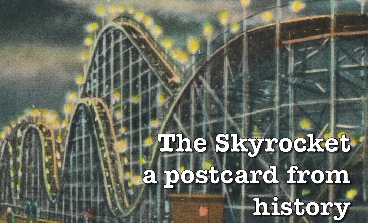 A large wooden roller coaster was always the centerpiece and primary attraction at the park. First built around the turn of the 20th century, the original coaster was known as The Southern Belle. Some time later, after an extensive re-design, it was named Leap The Dips. The final design was a much speedier and thrilling coaster, called The Skyrocket. Shortly before its final demise, the name was abbreviated to The Rocket for use in the role it played in two Hollywood feature films. —Wikipedia