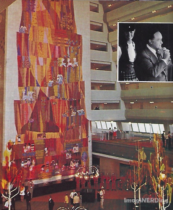 Comedian Bob Hope presided over the dedication of the 1 ,057-room, 14- story Contemporary Resort Hotel. Standing on a platform, in the Grand Canyon Concourse (a lobby unique with monorail trains running through it and so vast it was decorated by landscape architects), the master wit introduced celebrities to the hundreds of guests and got off a series of ad-libs that were classic.