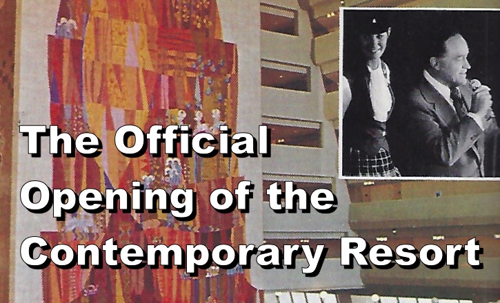 The Polynesian Village and the Contemporary Resort-Hotel were launched with a festive nighttime luau, an electrical water show, and a celebrity-studded ceremony and poolside buffet presided over by comedian Bob Hope.
