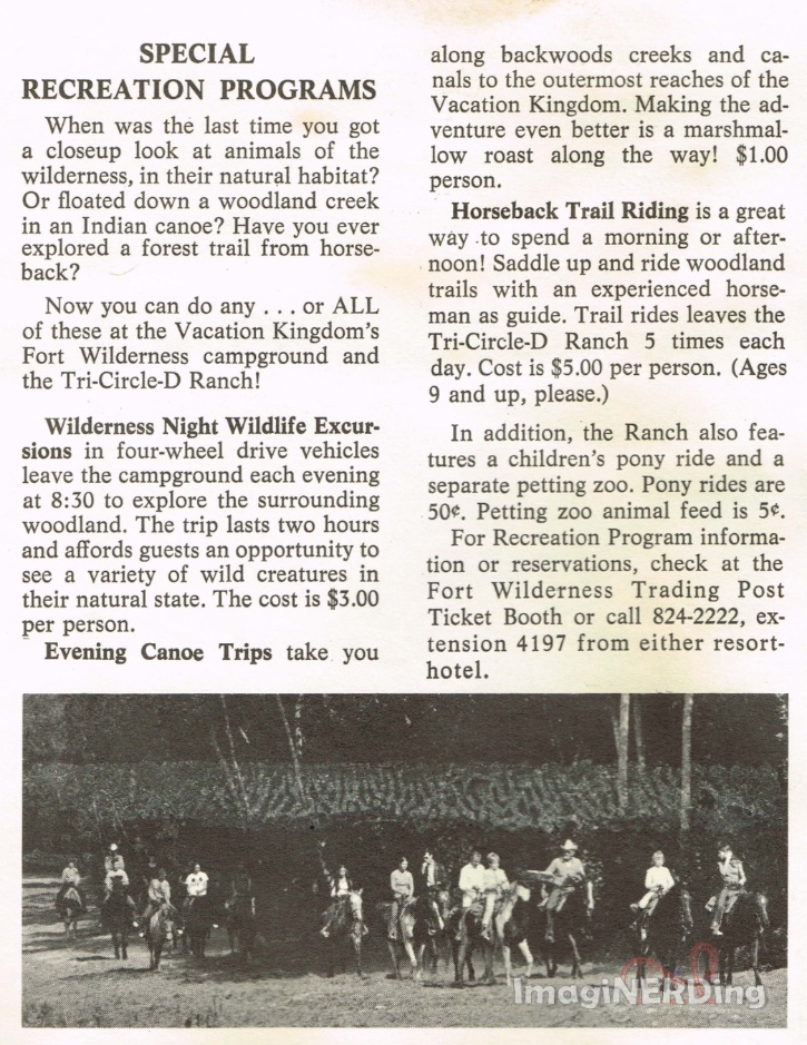 There is a brief mention of the excursion in the Spring 1973 edition of Vacationland. This was a seven-day “journal” of a family vacation at Fort Wilderness. The article focuses heavily on the recreation available. Surprisingly, the “family” only spent two days at the Magic Kingdom with their first visit to the theme park on day four. Seriously?