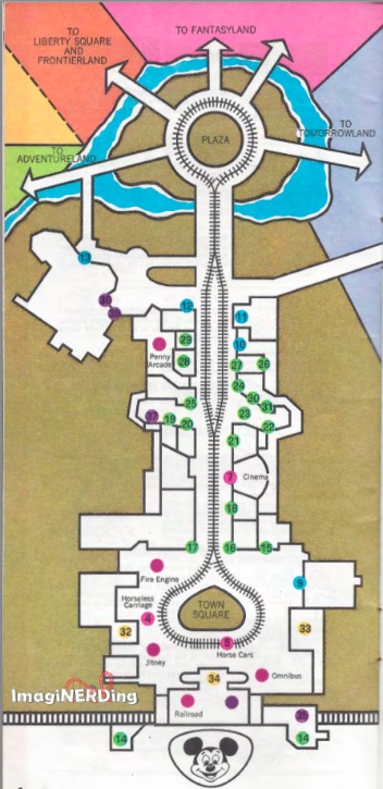 Sponsored by Gulf Oil from 1971-1979, this building opposite City Hall was later destined to become the Town Square Theater. In its early years, however, it served first as a backup Guest Relations area, and was outfitted to look like a hotel lobby, though a dreamed-of hotel behind it never materialized. Instead, it became host to the Walt Disney Story in 1973, which used photographs and spoken quotes from Walt himself to relate his biography in dual theaters with plush seats (as well as memorabilia and scale models from Disney projects, and a widely-recognized mural of 150+ Disney characters). In 1990, the Hospitality House was converted to Disneyana Collectibles, then the Town Square Exhibition Hall in 1998, and then the Town Square Theater in 2011.