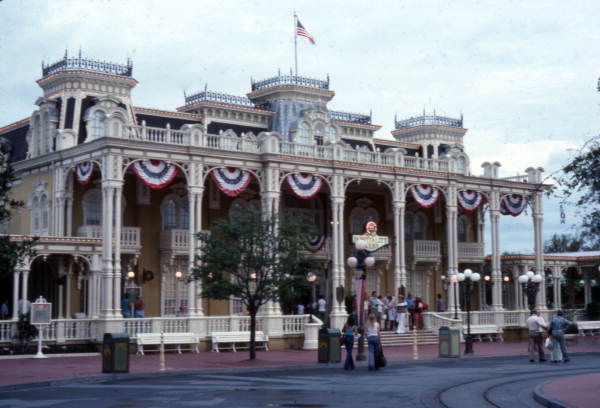 Gulf Oil sponsored the Gulf Hospitality House (and The Walt Disney Story) from 1971 to 1980. To the left is the Town Square Café, which was sponsored by Oscar Mayer until 1981, when Hormel jumped in. The open-air dining of the Town Square Café was enclosed in 1989 when it was converted to Tony’s Town Square Café.