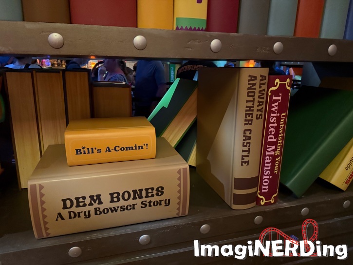I didn’t catch every title during my first walk through Bowser’s Library—snapping photos while moving through the queue was its own challenge. Wait times varied throughout the day, but late afternoons offered shorter lines and better photo opportunities. I’m looking forward to future visits where I can take my time and uncover even more of the clever (and hilarious) details tucked throughout Bowser’s Library.