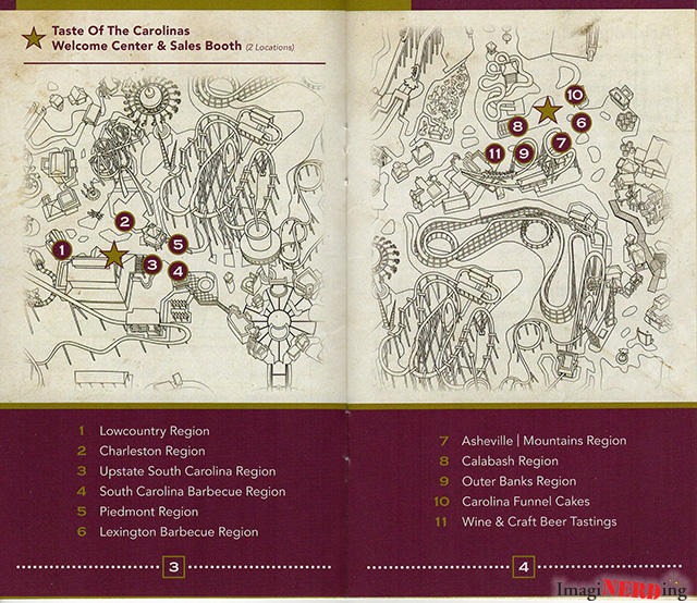 The festival is divided into North Carolina and South Carolina, with at least four booths in each state area. Similar to the Food and Wine Festival at Epcot, small buildings have been erected for the different regions. At both areas, you’ll find a Welcome Center & Sales Booth that offers brochures and a place to purchase pre-loaded cards.