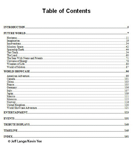 They’ve also included a timeline of Epcot Center history that starts in 1965 and ends at the 30th Anniversary Celebration. It’s a handy reference for attraction openings and closings. There is also a fairly in-depth index, too. I’m hard-pressed to pick out a favorite section since there are so many great photos of all of the pavilions, including a few construction photos and in-ride images. Although, I was surprised that there was no mention of the Ep-ity-cot celebration.