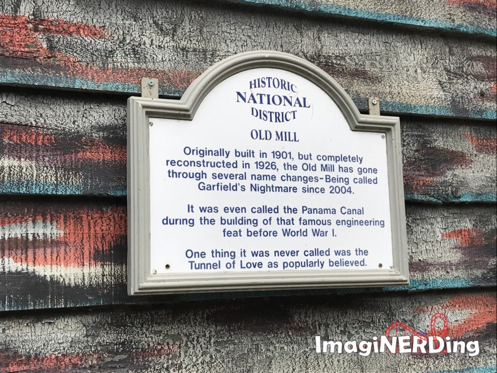 Well, water rides, such as the Old Mill and Tunnels of Love were the predecessors to modern dark rides and water-based rides, like: it’s a small world; Pirates of the Caribbean; and Frozen Ever After. Granted, the Old Mill never had the technology of the Disney classics, but it was still the first step towards them. Over the past 100 years, the Old Mill has had several face-lifts and is currently themed to Garfield’s Nightmare. Although it’s out of fashion, the Garfield overlay still makes it a fantastic dark ride.