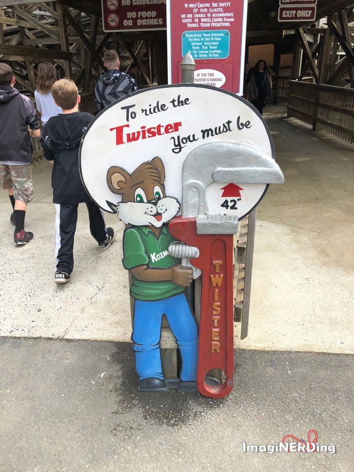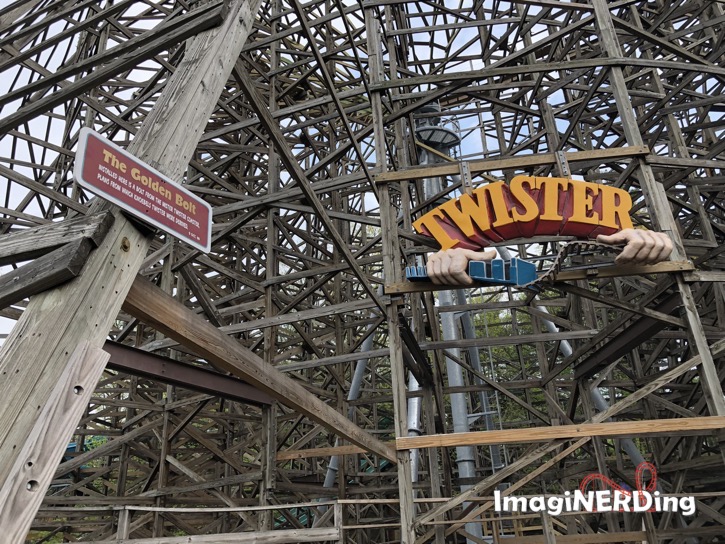 Twister is a coaster that is based on the designs of the Mister Twister coaster from Elitch Gardens in Denver, Colorado. They were going to relocate the coaster, but there just wasn’t enough space. So, they bought the blueprints and changed the designs somewhat to fit the space available.