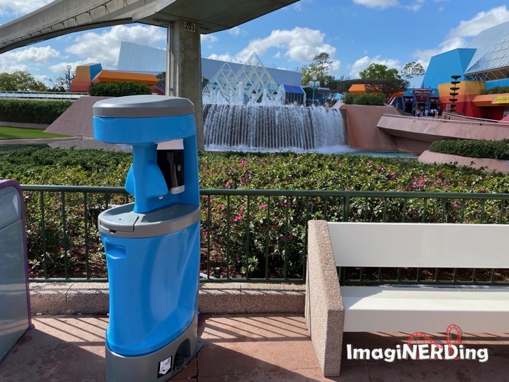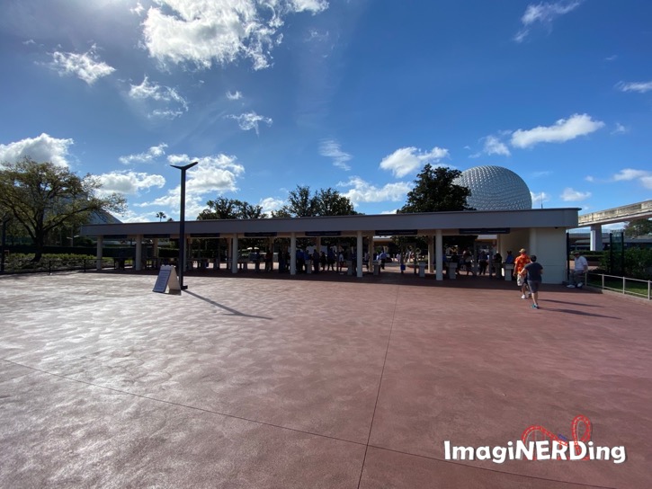 This is the new security and bag check to the left of the monorail. It’s similar to the new security check at Hollywood Studios. I imagine that Epcot will have three distinct stations: parking lot, monorail and buses. You can see how empty the park was at 10:30 in the morning.