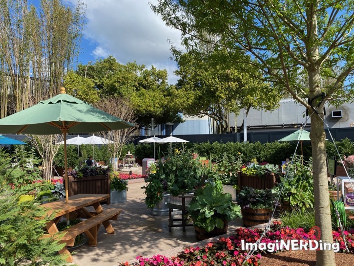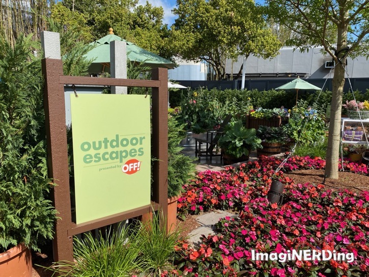 The Outdoor Escapes presented by OFF! was new and a nice temporary re-do of an area. It is located across from Test Track, sort of. There were seating areas, shade and lots of plants (that I’m assuming repel mosquitos).
