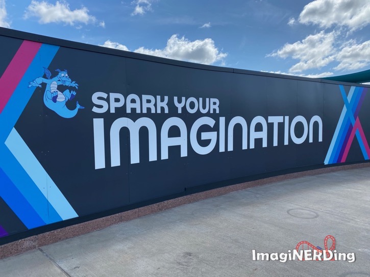 I love seeing how the construction walls are taking advantage of the themes and characters of the past, present and future of Epcot. And I love the font!