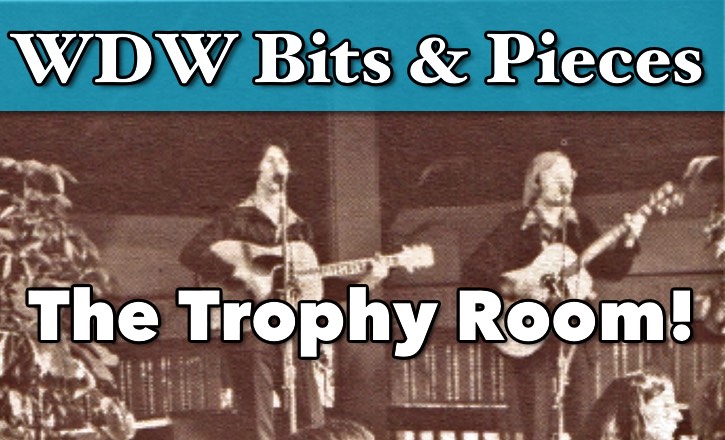 Whenever I run across an article or piece of information about one of these attractions, I have to find a way to document it. In this case, I found an article from a 1975 WDW News that had a blurb about the Trophy Room at Disney’s Golf Resort. It also included menu choices, prices, and information about the musical duo Amos and Charles.