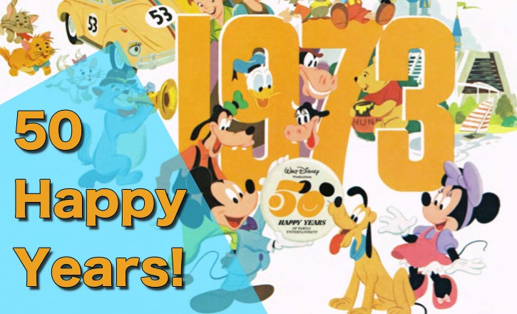 Back in 1973, Walt Disney Productions demurely celebrated the fiftieth anniversary of the company founded by Walt and Roy. One of the promotional pieces was the cover of the Disney News: Official Magazine for Magic Kingdom Club Families from the spring of 1973